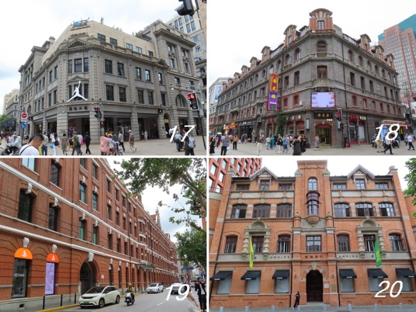 這一趟來 外灘拍了近50棟大樓,個人經驗,逛老街若建築物太多,漏拍的就跳過去,若回頭補拍,整理照片時會很亂;這次也一樣,有些網美賴著拍不完的大樓,不是將網美入鏡就是跳過,最後選兩棟當結束。[圖19]是四棟建築集合改建的「益丰.外滩源」大樓,超多網美以它當背景拍照,這棟是北京東路99號。[圖20]是圓明園路97號的「安培洋行」大樓。圓明園路再往北走還有很多老建物,此時接到 老哥來電,約晚上一起吃飯;看時間差不多了,邊拍邊走,走到延安東路打車赴約。