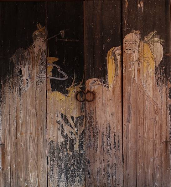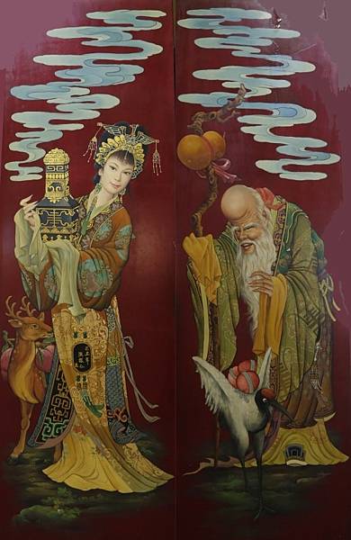 屏東 佳冬的 蕭宅是一座有五堂六院的大型合院,其中三堂有一對「壽星、麻姑」門神,這對門神在《門上好神》、《台灣門神圖錄》兩本門神專書上都列出,算是 台灣民居門神中的佼佼者。年代久遠,作者不詳,獨樹一格的畫風和特殊題材創作,成為喜好拍彩繪門神心目中嚮往的標的。蕭宅三堂這對門神經年累月後圖案非常斑駁,以一幅新的仿繪門神代替,原門神拆卸後保存於堂內,可供新舊比對,個人覺得兩幅作品皆上乘之作,等於說 蕭宅內有兩組經典門神。