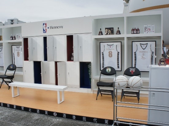 現場排隊投籃的人潮最多,站半場線一分鐘內試投三球,投進的有 HENNESSY & NBA紀念籃球一顆。小兒子想嘗試,但隊伍實在太長,放棄了,我們只在旁看別人投籃,看到有人進球,跟著興奮地吶喊。老婆建議爬上 中正紀念堂階梯上拍全景,於是一家人登上階梯,上到頂上正中央有人正拍照,在一旁稍等。不對,是剛才擋仿吧檯那傢伙,故意擋在中央線上,不是拍照是在滑手機,一家三口擋住整個中央段;我再也按耐不住,比手勢要他們讓出位置,那人面無表情離開,一家三人一起快閃。