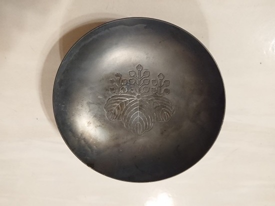 整理櫥櫃找到一個銀製清酒碗,圖案是五七桐,背面篆體字是 昭和三年 大禮紀念 臺灣總督府,碗底緣有極小的章紋落款刻著「宮本」,同時有「純銀」印記。網路拍賣不難見到「昭和三年 大禮紀念」的物品,有官方單位贈品或民間販售製品,署名「臺灣總督府」的不多,判斷是 昭和天皇就職大典,臺灣總督府贈送給 祖父的紀念。