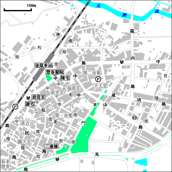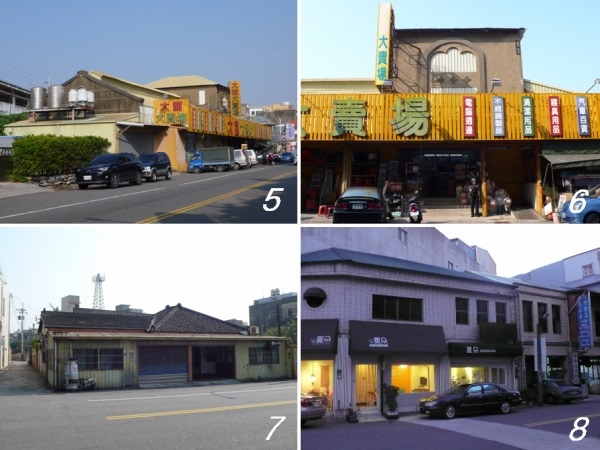 謝宅續往南走,房舍漸少,有幾棟 日式建築[圖7]出現,其後方有鐵塔什麼的,應該是昔日官方單位的宿舍區吧。根據網路上很早出現的網頁描述,後龍街區內另有一座 杜開棟老厝,是中西合璧的老式街屋,這棟老宅我找過幾次,不知所指是哪一棟,或是已經消失了,不曉得。說到街屋,曾經擴寬的中華路自然昔日的立面已消失,但街區內仍可見到不少老街屋,[圖8]是中龍街與中正路轉角的街屋。