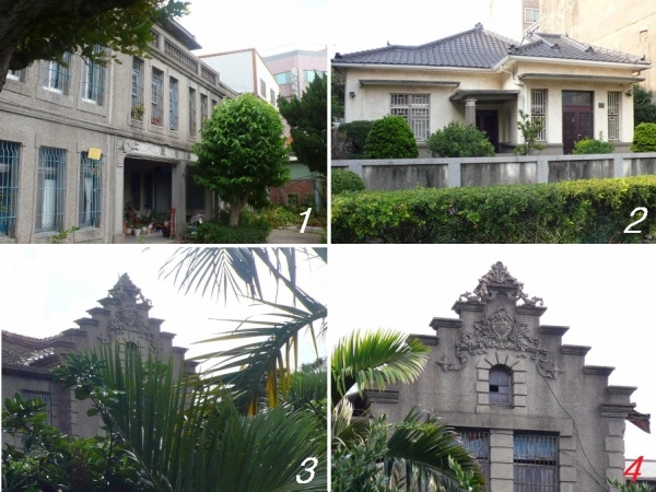 後龍火車站高架化前,蔡宅是一座有前庭的大宅[圖1],那時是住家,庭園內樹木茂盛,不易拍到全景。蔡宅背面有一棟精緻的和風洋房[圖2],維護相當完善,記得問過鄰人,忘了對方說是 蔡姓或是 陳姓子弟的房子。和風洋房就面向 中華路(舊台1線),其對面就是 母親節清晨被拆掉的 陳宅,我的老照片[圖3]還見得到屋頂的黑瓦,那時樹木幾乎遮掩立面。陳宅最經典之處是山頭為荷蘭式山牆[圖4],也就是階梯形山頭;荷蘭式山牆另可見於 台北 迪化街 乾元行,但 乾元行造型變異較大,陳宅比較接近 荷蘭傳統造型。