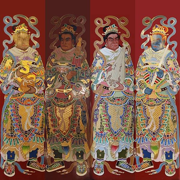 承「台灣的門神---四大天王(一)」繼續介紹 四大天王門神作品,一樣是前輩繪師與現役名家畫作並列。這一篇與前篇不同,前篇全是 佛寺的 四大天王門神,本篇儘量選擇 道教廟宇,以及道教化的傳統佛教巖廟出現的 四大天王。首先介紹 士林 芝山岩 惠濟宮,祂實際上是三座寺廟合體的廟宇,以 開漳聖王廟為主體,合併 芝山巖(觀音廟)以及 文昌祠。開漳聖王為 漳州特定地方神祗,士林 惠濟宮因為合併傳統佛教的巖廟,門神出現 四大天王,這是其他城鎮 開漳聖王廟少見的。
