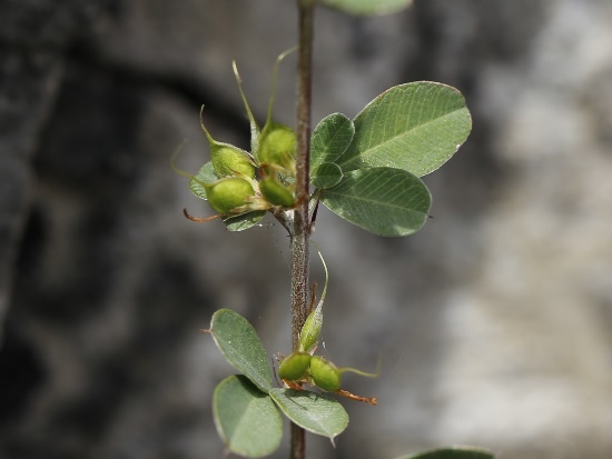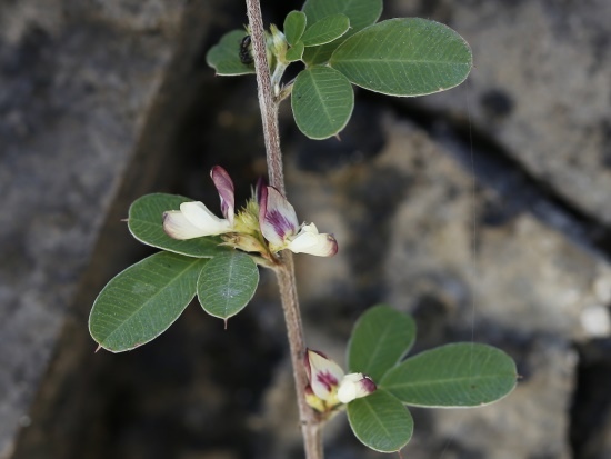 特徵:小灌木,高可達1m;莖堅硬,直立或鋪繖,分枝斜生;全株被白色伏毛。三出葉,小葉倒卵長橢圓形、長橢圓形、倒卵形至卵形,長10~18mm,寬3.5~7.5mm;上面無毛或被疏毛,背面被伏毛;先端截形、圓形或微凹,常有小刺尖;頂小葉通常最大。