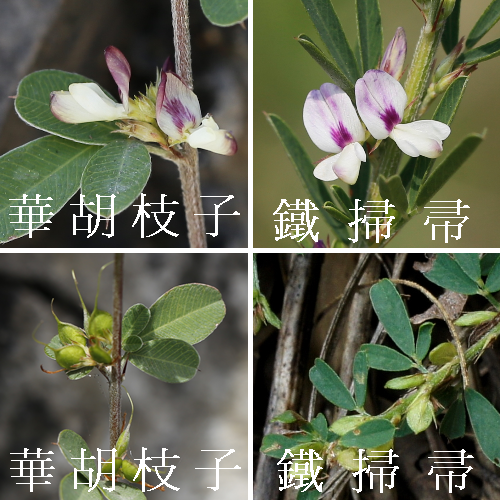 [註]喙(beak):是個專用詞,這裡指莢果先端延伸部分,如 碗豆莢先端尖尖的部分就是,通常稱“碗豆的莢果具喙”。華胡枝子莢果先端的喙很長,是 台灣已發表 胡枝子屬(LESPEDEZA)5種中最長的。
