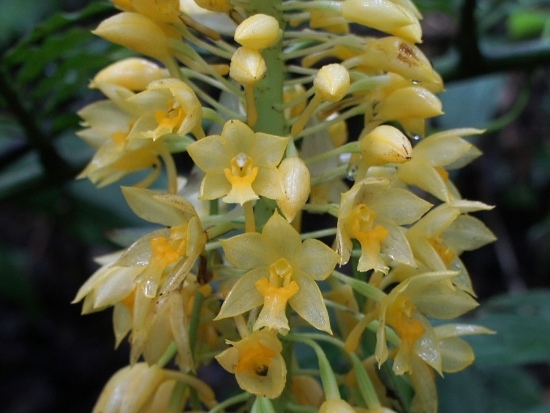 從學生時代起,假日喜歡往山區跑,交通因素,地點大多是 台北郊山。初冬時節,東北季風讓森林更為潮濕,此時行走山徑,很容易見到開整串黃色花的大型 根節蘭。它植株非常壯碩,葉子巨大,淺黃色花小,微微朝下方開;即使有一段時間我瘋狂收集 原生蘭,對於 台灣根節蘭這種大型地生蘭,還是一點興趣也沒有。漸漸地,足跡擴展至 桃、竹、苗山區,才注意到本種並非如想像中那麼多;它只密集出現在 台北、宜蘭低海拔山區,其他地方,它如同其他 蘭科(ORCHIDACEAE)植物一樣,有緣才能一見芳蹤。