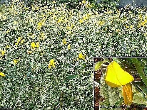 第一次見到 太陽麻是3~4年前在 大肚山台地 花生(甘藷)田見到的,當時以為是某種豆類蔬菜,未特別注意它。之後在 濁水溪兩岸見到滿滿金黃花的花田,才知道它是拿來當綠肥的作物;總覺得綠肥還是以 油菜花來得最美、最親切,其他的總不感興趣。