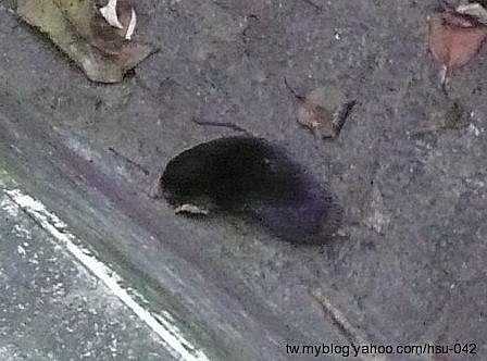 若續往前走可下到興南路、南山路交叉路口;看看天色昏暗,今日到此為止。回程從 上寶禪寺直接下階梯到 圓通寺,數年前來此這段路是陡峭泥土產業道路,如今已成為寬大寺廟階梯。途中發現掉落乾涸水泥溝渠的 台灣鼹鼠(穿地鼠),淒厲叫聲求援,稍費了些時間總算讓牠回歸山林;好可愛,救援前先拍張照留念,可惜溝渠所在處太暗拍得很模糊。