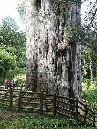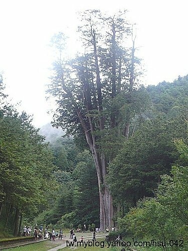 來到遊客車行終點「小雪山遊客中心」,這裡有 遊樂區重要景點「大雪山神木」和「天池」兩處,選擇先到神木。入口處一路陡下水泥車道,步行約廿分鐘便可到「雪山神木」。簡介牌標示:樹種為 紅檜,樹齡約1400年,樹高50m,胸圍13公尺......。大雪山神木與 溪頭神木大小相當,但樹形完整[首圖] ,健康狀況良好。