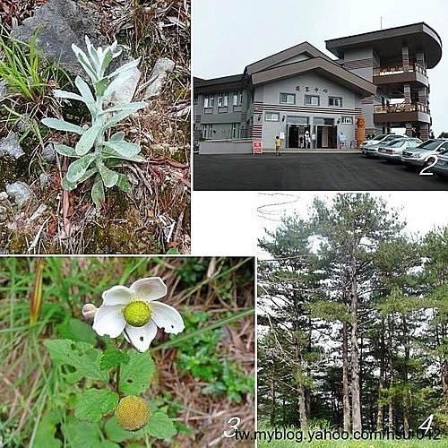一路走走停停到達 林道43km附近的遊客中心[圖2],這裡有步道可下到「大雪山小神木」;問了林務局人員來回要1小時,路程不短時間怕來不及,心理猶豫不決。路徑上我們前後都有那種喜歡拉開嗓門大聲談話的遊客,我登山最討厭遇上這類的人,以此為藉口不去了。中海拔植物景觀總是讓人驚奇,先介紹幾種植物,[圖1]菊科鼠麴草屬的大塊頭 紅面番,這種鼠麴草高度可超過1公尺,壯碩的不得了。[圖3]毛茛科的 小白頭翁,果實成熟後棉狀物附著在植物上,像是長滿 粉吹介殼蟲,有些噁心。[圖4]樹形優美的 台灣二葉松這裡非常多,增添了中海拔山區美麗景緻。