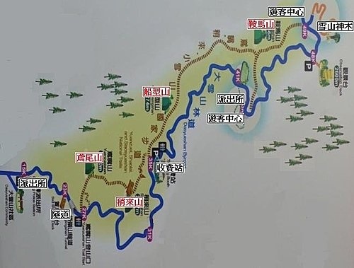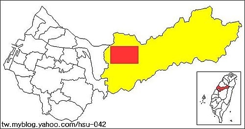 地圖中紅色方塊為翻拍「大雪山森林遊樂區」導覽看板圖的範圍