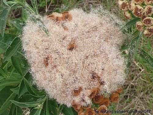 翼莖闊苞菊在 台北市區排水溝渠旁、公園邊緣偶爾可見;河濱公園長草區及未整理潮溼地則很常見。由於植物體過於粗壯,市區內常未見開花即被砍除。翼莖闊苞菊初開花時還有點“姿色”,一段時間後就成了上圖怪異的模樣,接著就是下圖讓人心裡發癢的樣子;還好它有一股淡淡的清香,彌補了怪異的外表。