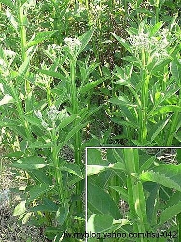 特徵:多年生草本,植物體高100~150cm。莖基部直徑可達2cm,木質化;多分枝,密被絨毛。葉,披針形至闊披針形,紙質,長可達12cm;葉鋸齒緣,互生。頭花全為管(筒)狀花;總苞半球形;瘦果角柱形,冠毛米白色至淡褐色。全株俱清淡香氣。