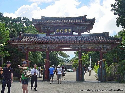 老婆10幾年前與 母親來過 守禮門,當時整個「首里城」只修復這個小小的牌坊,對遠道而來的觀光客難免失望。首里城是二戰時被焚毀,1958年 琉球政府首先復原牌坊「守禮門」,近年慢慢復原主體部分,並曾在「正殿」舉辦G8高峰會。另外,日本人對 守禮門有個不好的傳說,就是考試前看到此門會落榜,對此 琉球人非常不滿。