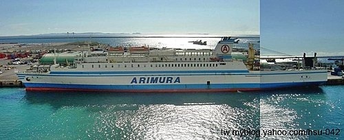 基隆─那霸 的航線在1957年復航,近10幾年都是由上圖這艘 飛龍號行駛;飛龍號 排水量約 16,500噸,屬於 客貨兩用輪船,船齡10多年;船隻為「友村產業」所有,航線為 基隆、石垣、宮古、那霸。航線曾經風光過,但於今年5月28日因不堪長期虧損而停駛;原以為從此再也見不到這艘船,沒想到在 那霸新港遇見她。